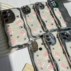 قاب کرومی پروانه و قلب صورتی آیفون و اندرویدی (کدC1825)
