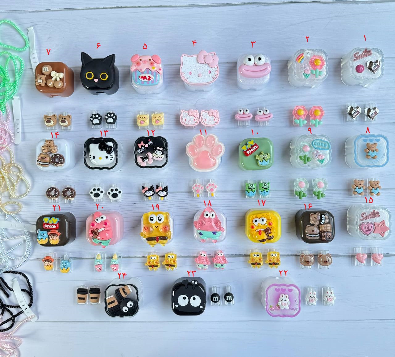 | طرح | 9-گل شفاف کیوت, 6-گربه مشکی, 7-خرس و گلیلاس قهوه ای, 8-خرس سرهمی پوش, -21توی استوری مشکی, 1-اسمایل قلب نقره ای, 10 – توی استوری سبز, 11-پنجه, 12-کرومی, 13-کیتی مشکی, 14-خرس و دونات, 15-اسمایل قلب صورتی, 16-خرس و شکلات, 17-باب شکمو, 18-پاتریک شیشه ای, 19-باب شیشه ای, 2-گل صورتی رنگین کمون, 20-پاتریک شکمو, 22-خرگوش بنفش, 23-هپل بزرگ, 24-هپل و کافی, 3-لب گنده, 4-کیتی صورتی, 5-خوک بستنی |