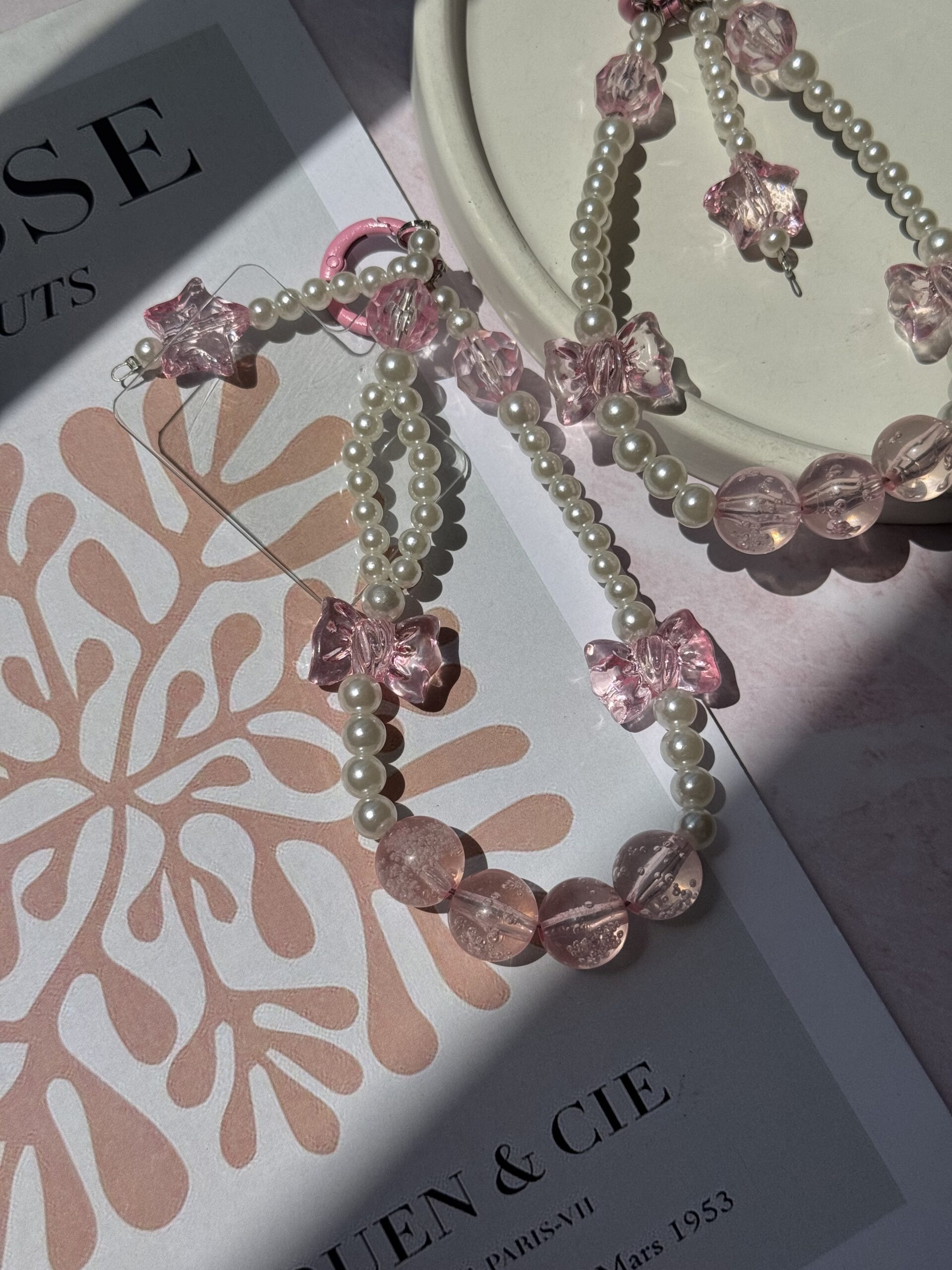 آویز مروارید و پاپیون صورتی (کدa0260)