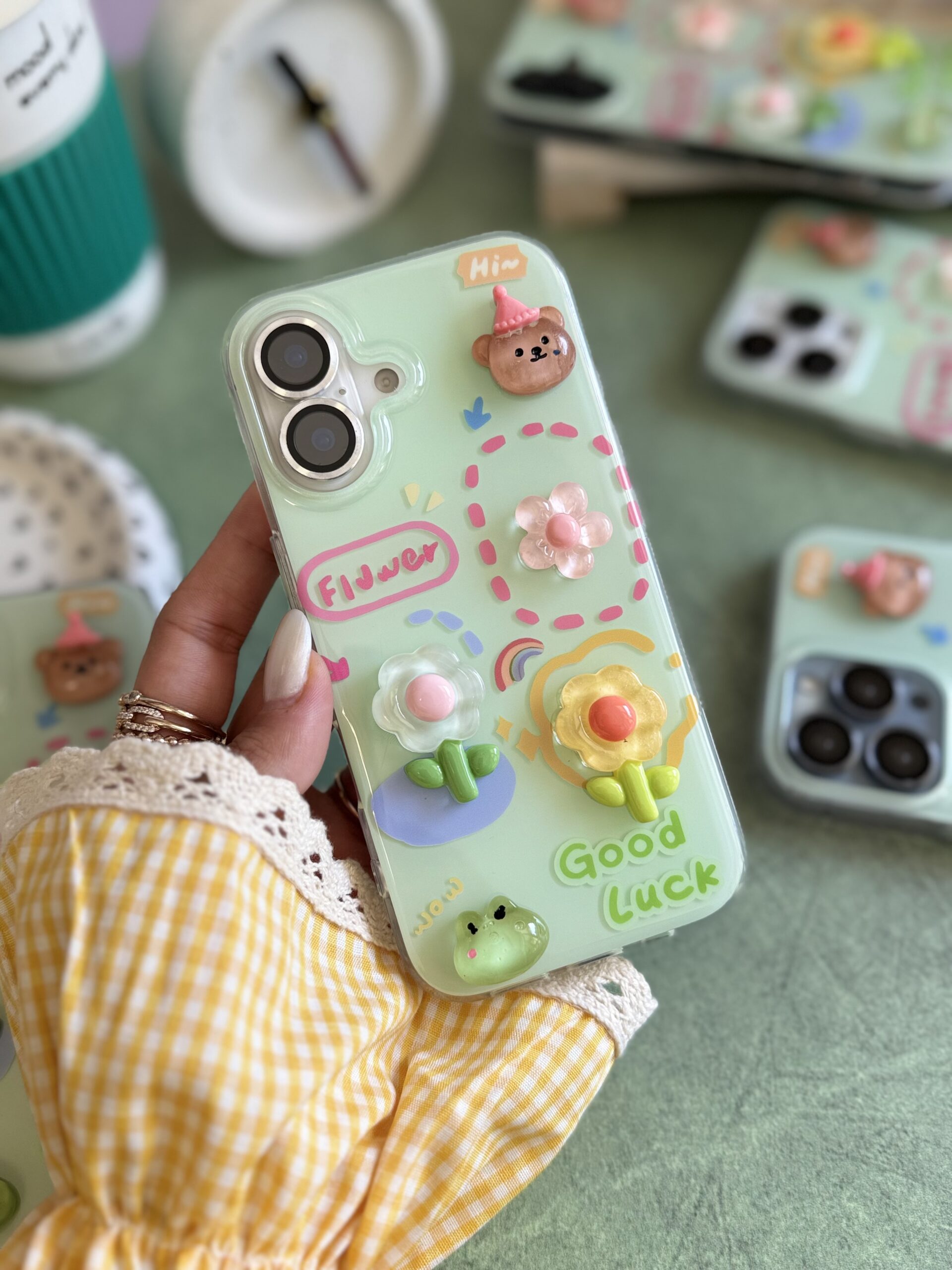 قاب گل برجسته زمینه سبز GOOD LUCK (کدC2107)