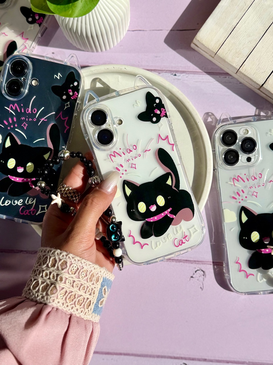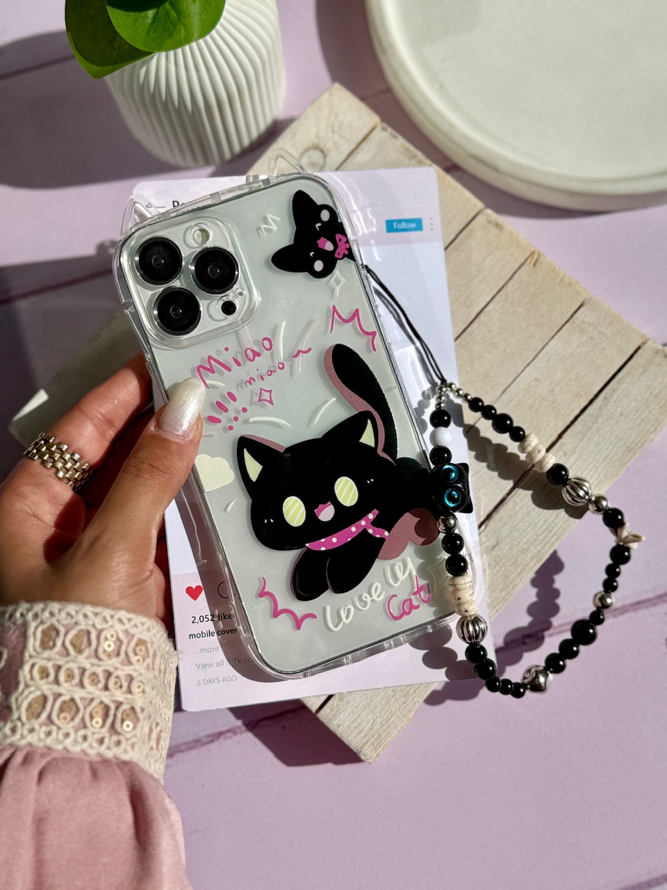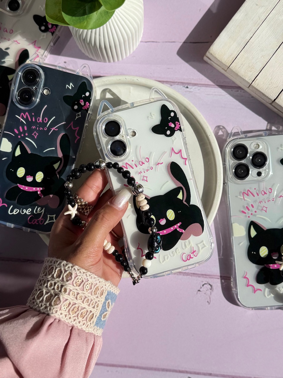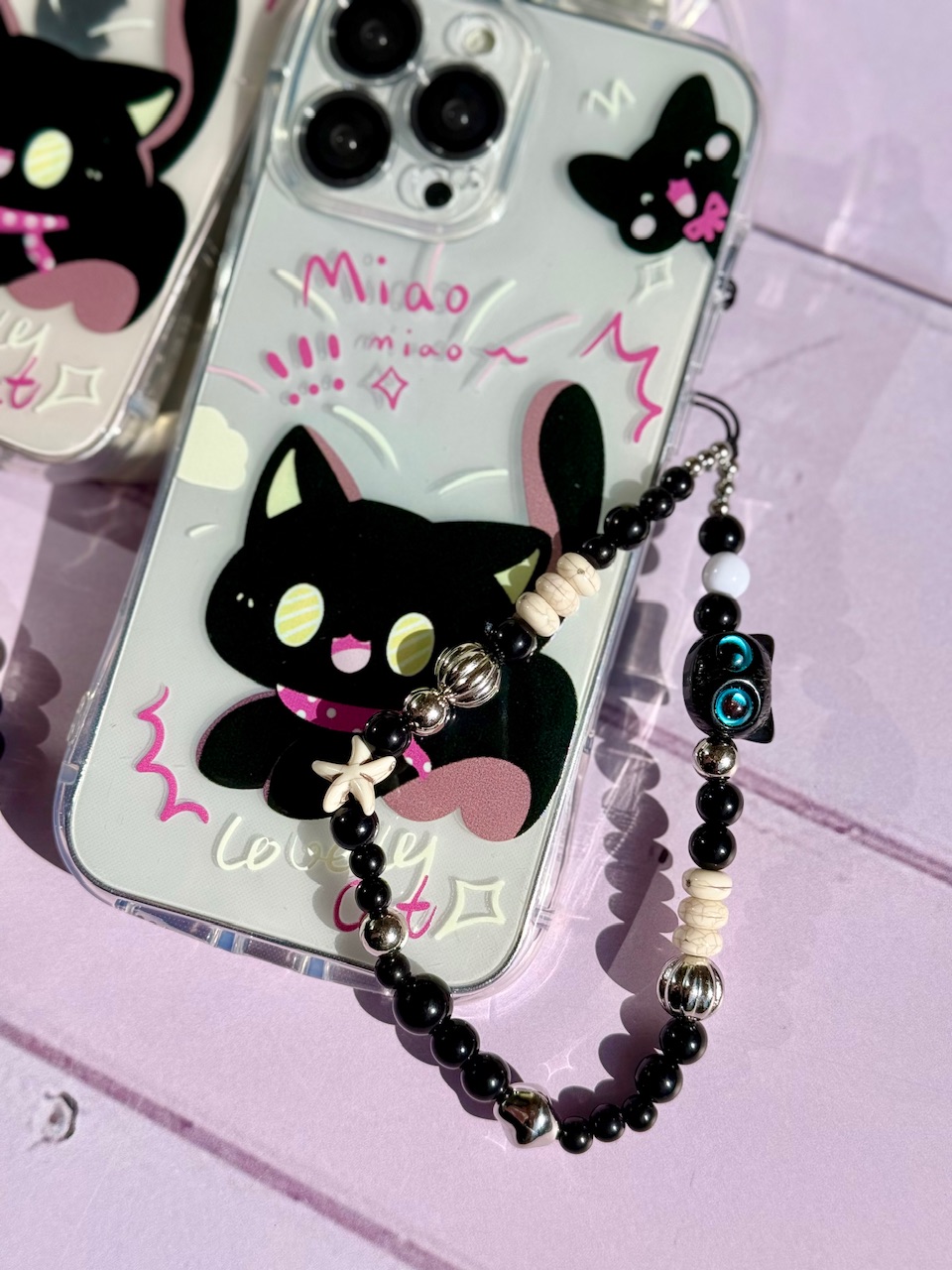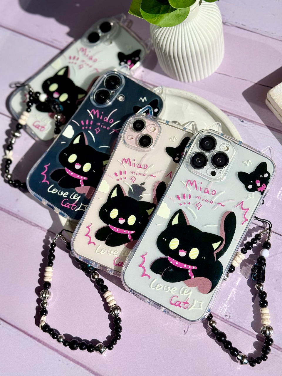 قاب گربه مشکی گوش دار با آویز (کدC2131)