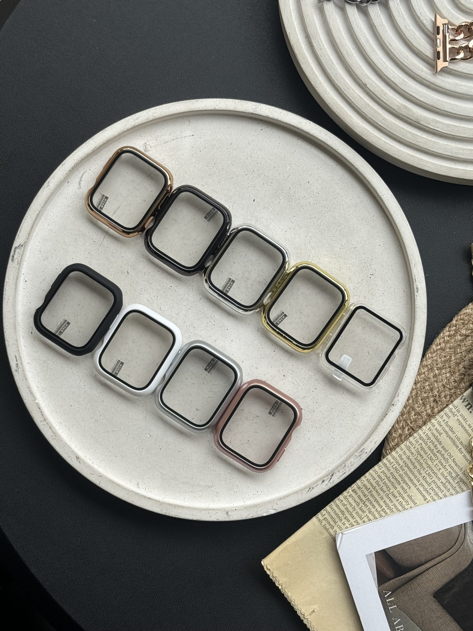 سفید, رزگلد(صورتی), نقره ای براق, مشکی مات, مشکی براق, طلایی, نقره ای مات, شفاف